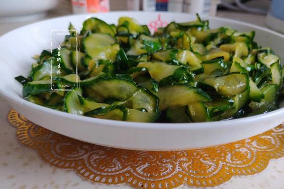 1. 凉拌脆瓜皮:将脆瓜皮切成细丝,加入蒜末、醋、盐等调料,拌匀即可。